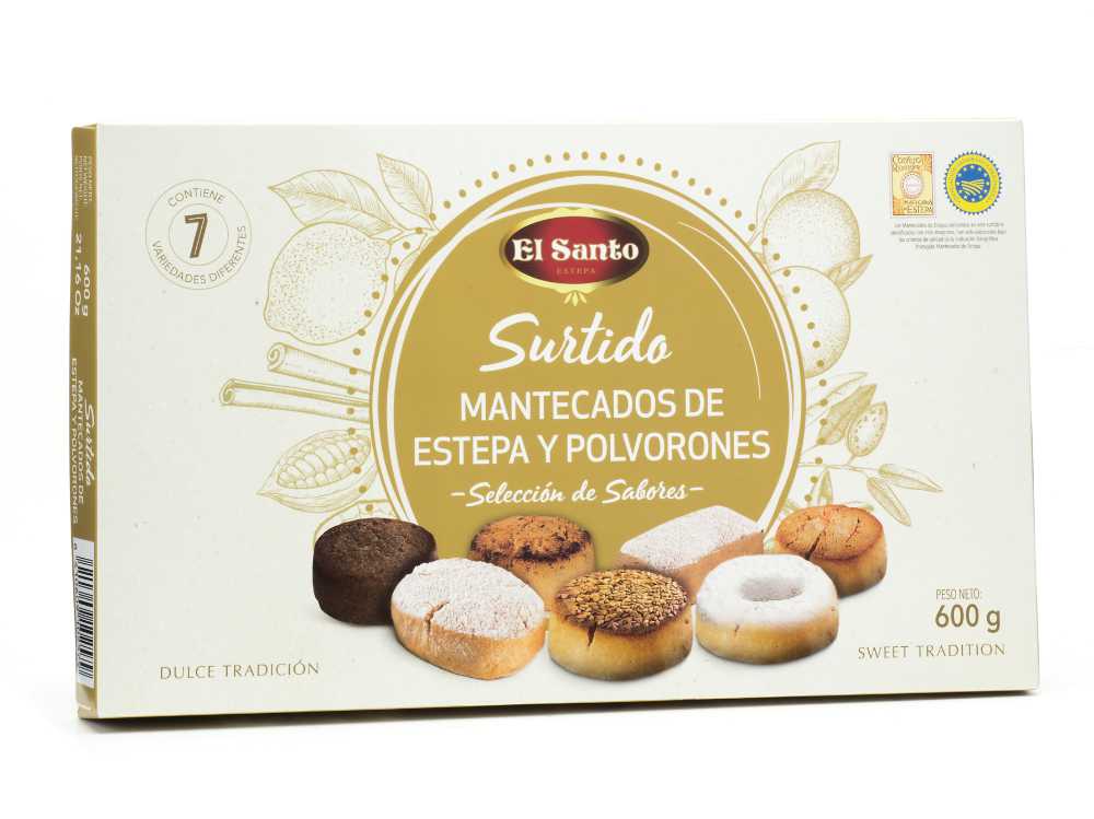 Mantecado de Canela: Harina de TRIGO, Azúcar, Manteca de cerdo (con antioxidante: extracto de romero), Canela en polvo (0,70%) y Semillas de SÉSAMO. Puede contener trazas de CACAHUETE, FRUTOS DE CÁSCARA (ALMENDRA), SULFITOS y/o SOJA.