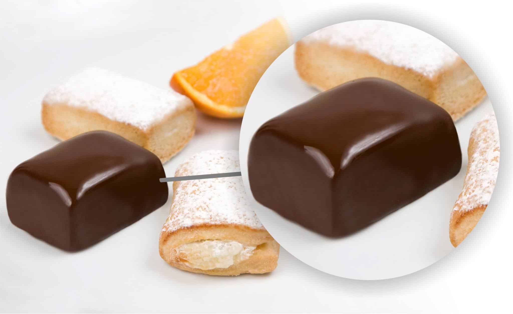 Ingredientes: Harina de trigo, manteca de cerdo (con antioxidante E-320), cobertura de grasa vegetal [azúcar, grasa vegetal de girasol y coco hidrogenados, cacao desgrasado en polvo (20% min), emulgente (lecitina de soja), aroma y canela], margarina [grasas y aceites vegetales de palma y girasol, emulgente: E-471, sal, aroma, acidulante: E-330, colorante: E-160a], relleno de crema de cacao (25%) [azúcar, grasa vegetal de palma y girasol, cacao desgrasado en polvo (8,5%), almidón modificado, almidón, emulgente: lecitina de soja, pasta de avellana, aroma y vainillina], vino, sal, esencia de vainilla y esencia de naranja. Puede contener cacahuete, frutos de cáscara, leche, sésamo y sulfitos.