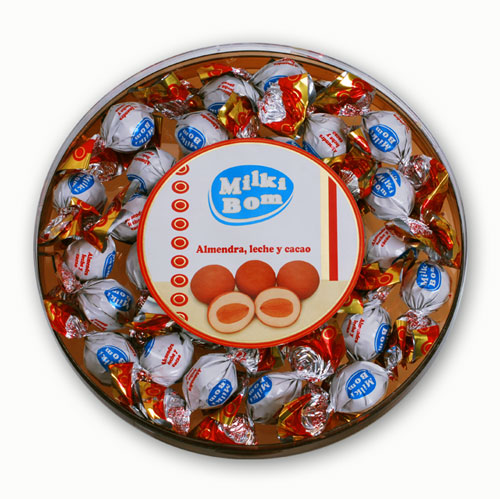 INGREDIENTES: Chocolate blanco 88% (azúcar, manteca de cacao, LECHE entera en polvo 25%, LACTOSUERO en polvo, lecitina de SOJA y vainillina), ALMENDRA 10%, Aceite de girasol y Cacao en polvo1 %. Puede contener trazas de: GLUTEN, HUEVO, CACAHUETE, otros FRUTOS DE CASCARA, SESAMO y SULFITOS. Valores nutricionales por 100g: Valor energético (2387kJ/561kcal), Grasas (totales 38, saturadas 18), Carbohidratos (totales 50, azúcares 26), Proteínas 8, Sal 0,3.