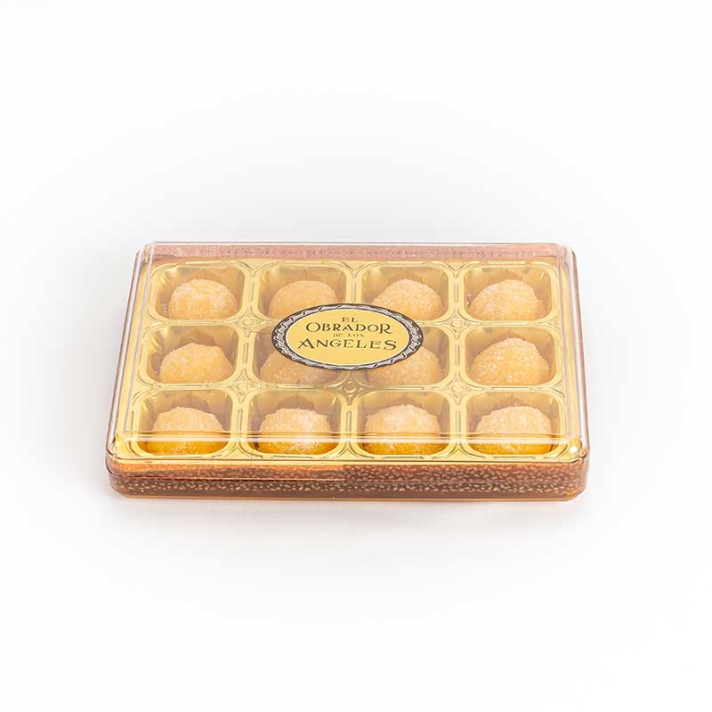 Yema de HUEVO (yema de HUEVO, azúcar, jarabe de glucosa, y fructosa de maíz, conservador: E-202, estabilizante: E-330) y azúcar. Puede contener trazas de LECHE y GLUTÉN.
